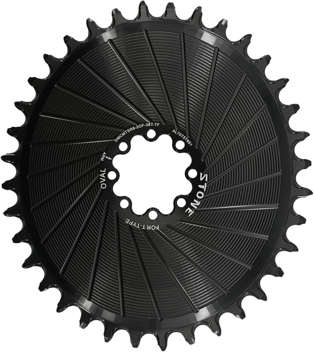 DJC Stone Bike Chainring Oval for T-Type 12s AXS Flattop | 3mm Offset | Direct Mount | Compatible with Sram Eagle X0, XX, SL | Sizes 26T 28T 30T 32T 34T 36T | MTBFeaturesT-Type Chain Works: Supports 12 speed T-type chains and 12s AXS flattop chains, ensuring smooth and reliable performance. Crank install interface is 8 pins, other kind crank not able to install.3mm offset with a 52mm chainline, compatible with XX Eagle SL Crankset, XX Eagle Crankset, X0 Eagle Crankset, and all 8-pin direct mount cranksets.Hollow and Aero Style: Aero style looks cool but chain noisy is bigger than hollow one. Oval chainring riding force angle is 110 degree for best riding power efficiency.High Stiffness and Durability: Crafted from high precision CNC machined 7075 T651 Aluminum by USA Aleris / Alcoa. Anodized black for long-lasting performance with HB150 excellent stiffness. Lifespan of up to 20,000km.Enhanced Performance Features: Includes enhanced drop-stop technology and self-cleaning design for superior chain retention and reduced maintenance. Weighs only 26T 48g, 32T 67g, 38T 92g, offering a perfect balance of strength and weight.Size-T Diameter-mm Weight-g26T 121.5 48g 1.69oz28T 129.5 55g 2oz30T 137.5 60g 2.12oz32T 146 67g 2.37oz34T 154 77g 2.72oz36T 162 85g 3.00oz38T 170 92g 3.25oz40T 178 100g 3.53ozAboutStone Design Workshop create cutting-edge designs chainrings that are stiff, lightweight, quiet, drop-stop, and durable. Our products excel in all heavy-duty cycling sports, including Downhill, CX, Gravel, and Traction, with a guaranteed lifespan of 20,000 km.
