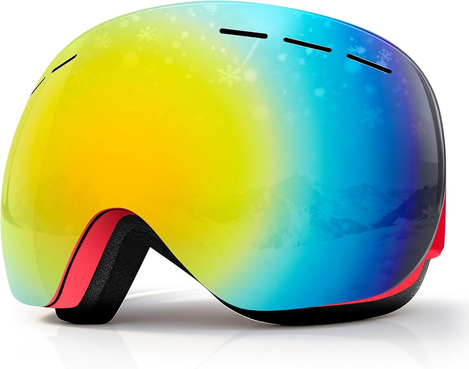 Napzy Ski Goggles are engineered for peak performance in winter sports. Featuring advanced lens technology and a precision ventilation system, these goggles work together to deliver effortless breathing and crystal-clear vision. The bidirectional vents and anti-fog lens with triple-layer foam ensure no fogging, even during intense activity. With a durable PC outer lens and flexible TPU frame, they offer impact resistance and all-day comfort. The adjustable strap guarantees a snug fit for men and women, while the 180-degree wide-view design provides unobstructed panoramic visibility. Perfect for skiing, snowboarding, or any snow-related adventure, these goggles combine style, safety, and functionality. Choose from five vibrant colors (Silver, Pink, Black, Blue, Red Mirror) to express your unique style on the slopes!